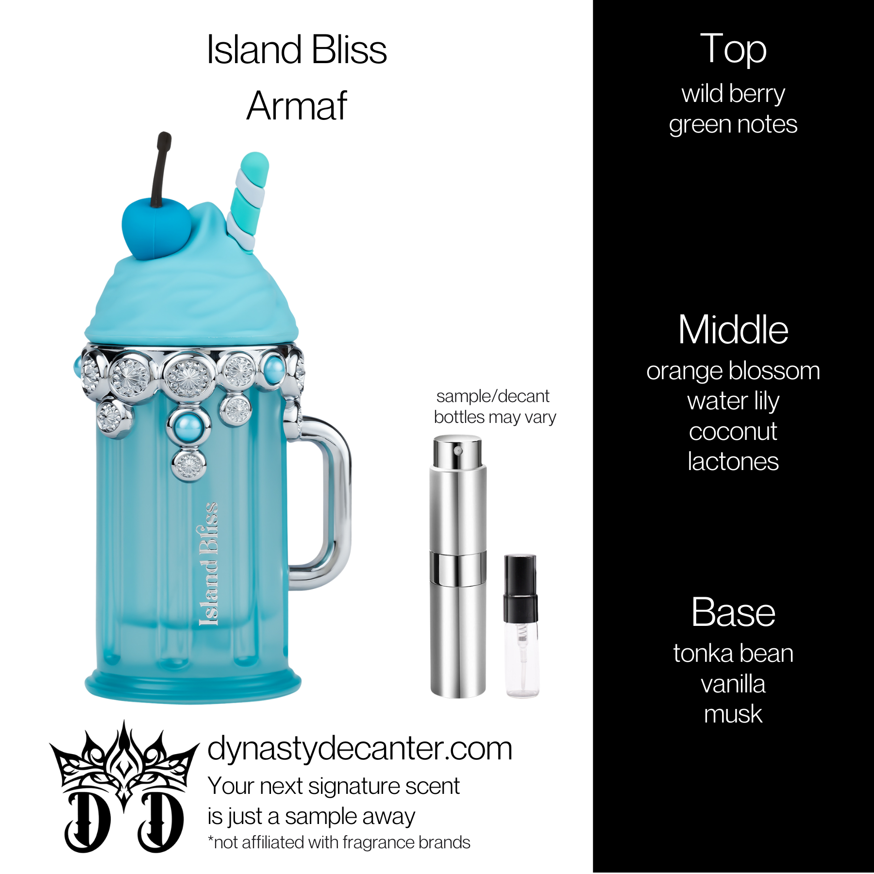 This fragrance is inspired by Althair by Parfums de Marly. Reviewers describe Island Bliss as opening with beachy white florals and coconut cream, evoking luxury resort vibes, similar to its inspiration.