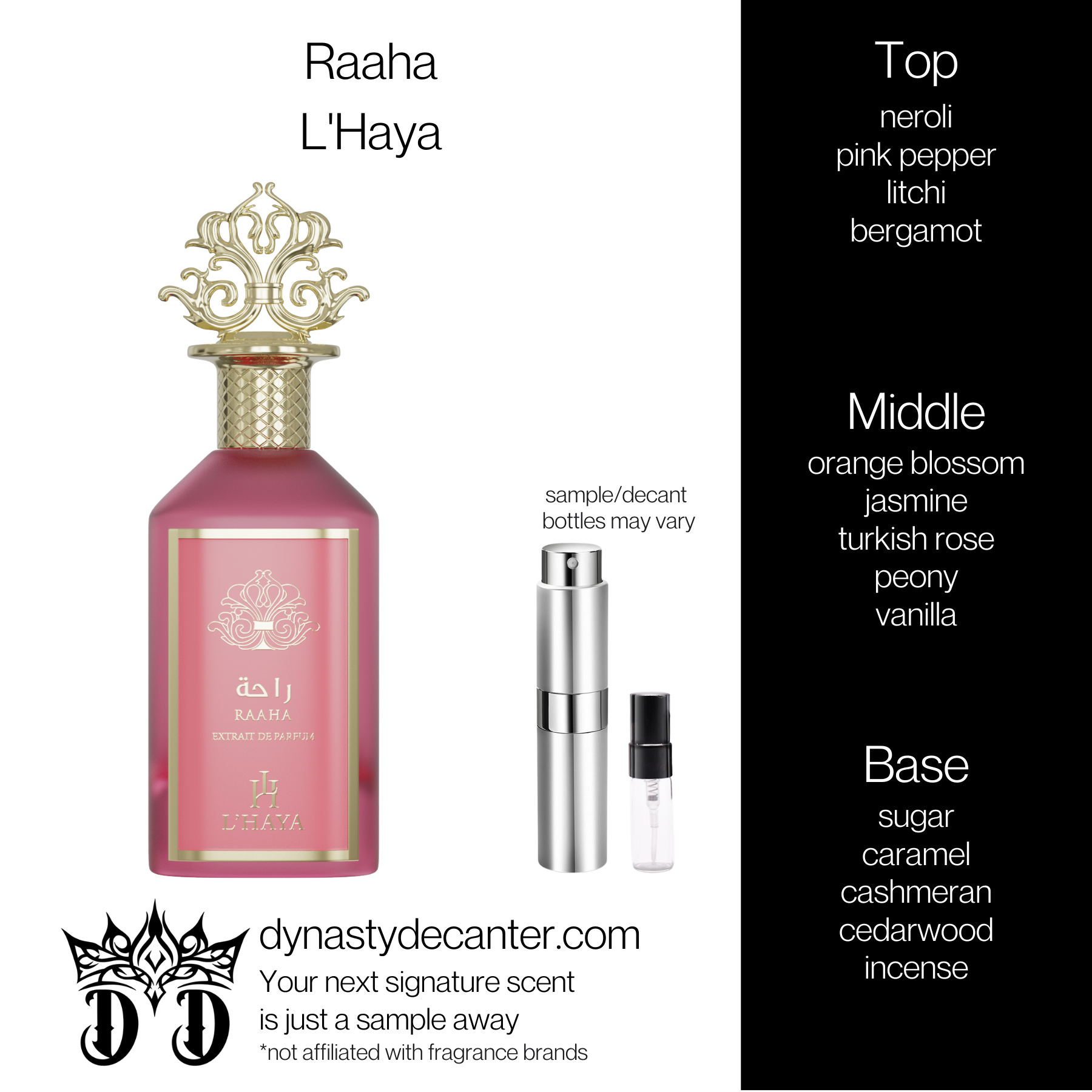 Raaha by L'Haya is a grand, velvet bouquet of creamy florals wrapped in decadent caramel and sugar.