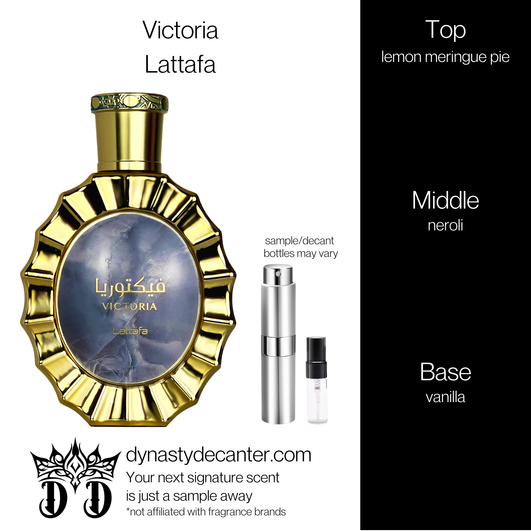 Victoria by Lattafa is a creamy, irresistible gourmand scent that captures the comfort of a perfect, sun-drenched dessert.